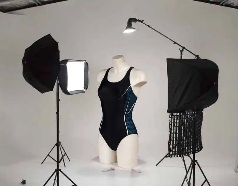 A simple yet effective setup uses two soft light sources at 45° angles, a pure white or clean sweep background, and a tripod to keep shots consistent. Mark the floor for the mannequin and tripod positions and shoot at chest or hip height. Soft, even lighting avoids harsh shadows and simplifies editing.