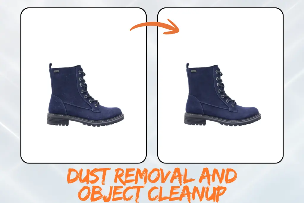 We carefully eliminate dust, scuff marks, wrinkles, and any visible blemishes that may distract from the product’s quality. Every surface is cleaned and retouched to ensure a flawless appearance. Your shoes will look brand new and ready for any high-end promotional use.